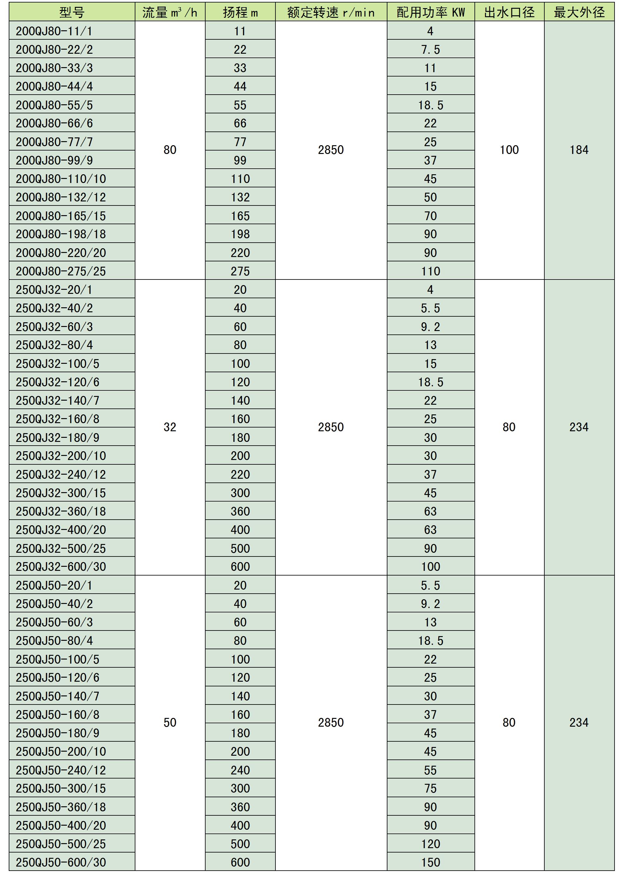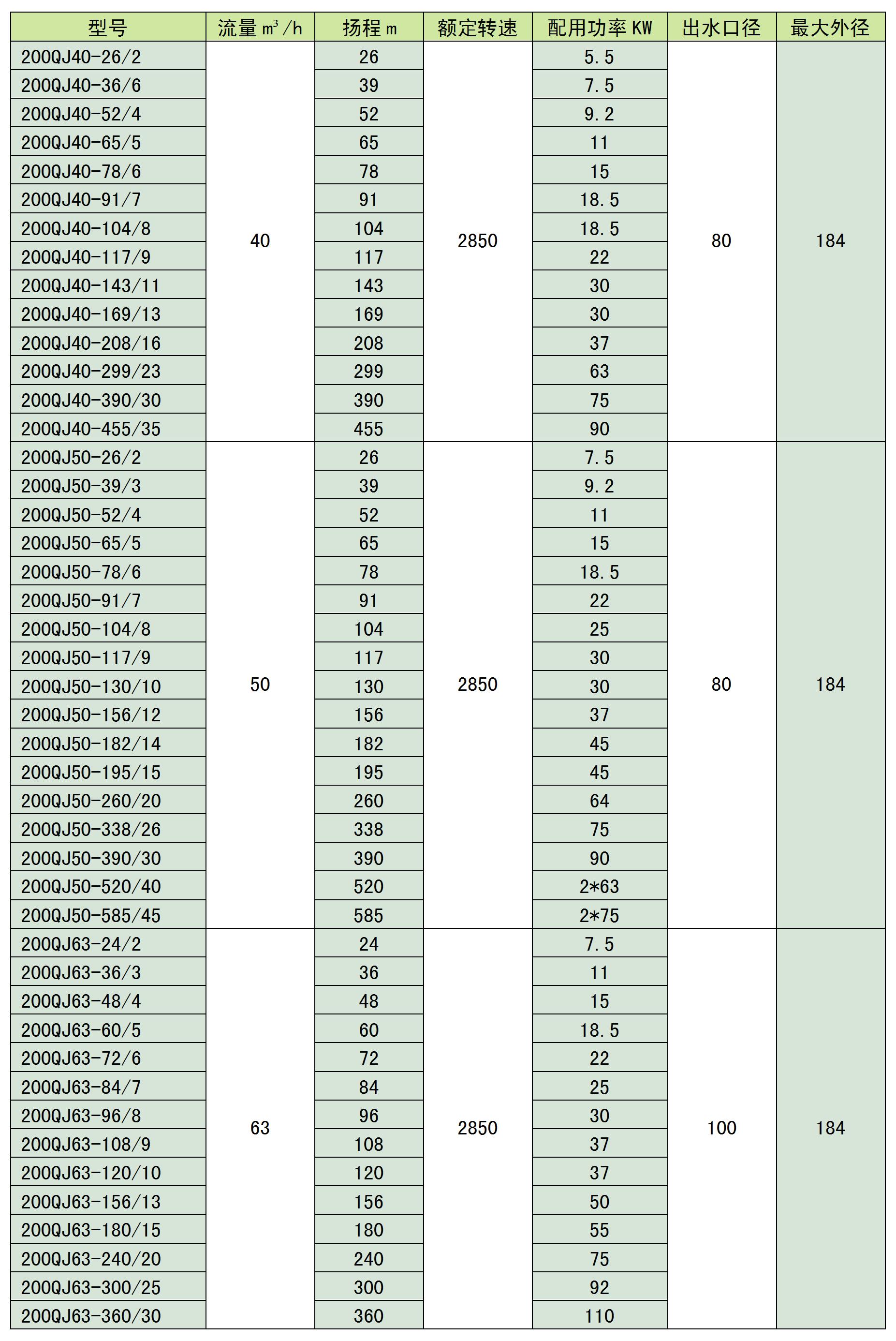 QJ系列深井不锈钢喷泉泵潜水泵简介:QJ系列井用潜水泵是我公司自行开发的立式单吸多级潜水泵。泵与电机连为一体,潜入水中工作,该系列泵是深井提水的主要工具,适用于城乡、工矿企业用水及农业灌溉。QJ泵的导壳与导壳为螺联接,轴瓦为橡胶轴承,叶轮定位为锥套。使用条件:泵进水口至少应浸入动水位3m以下,电机底部距井底不少于5m,井应正直。同时满足一下条件:1、水温不高于20℃;2、水中固体含量(按重量计)不大于0.01%;3、水中的酸碱度pH值为6.5-8.5;4、水中硫化合物含量不大于1.5mg/l;5、水中氯离子含量不大于400mg/l。